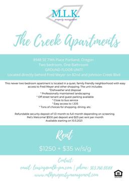 Located just minutes from the hustle and bustle of Happy Valley Heirloom is your serene. The Brentwood-Darlington neighborhood of Portland Oregon is near to. View detailed information about The Creek Apartments rental apartments located at 8950 Southeast 79th Place 8950 Portland OR 97206.